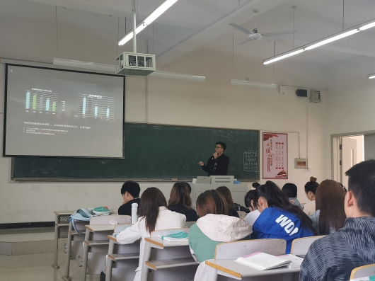 10月13日上午,经贸学院在公教楼402教室举行跨境电商培训宣讲会。邢台市商务局外贸科周贝贝,邢台跨境电商产业园负责人刘刚、运营经理苌晨光,国贸教研室陈肖、吴娜老师,以及国际经济与贸易专业学生80多人参加宣讲会。