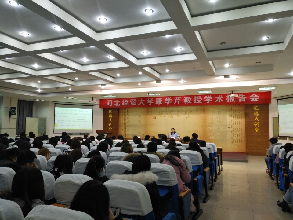 应经济与贸易学院邀请,河北经贸大学康学芹教授于2017年12月21日下午14:00-16:00,在图书馆报告厅为我院师生做了题为《企业的国际化、全球化与新时期中国企业“走出去”》的学术报告。经贸学院部分教师及国际经济与贸易专业学生共200余人聆听了报告,院长李庆波主持了报告会。