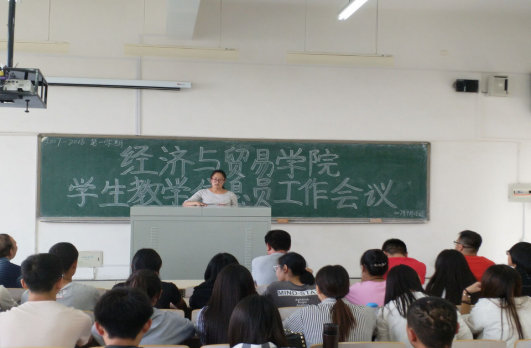 9月28日下午,经贸学院在公教楼410教室举行学生教学信息员工作会议暨新生见面会,院长李庆波、党委书记马在革、学管办主任马飞、团委书记杨光及全体学生教学信息员参加会议,教科办主任尚爱英主持了会议。