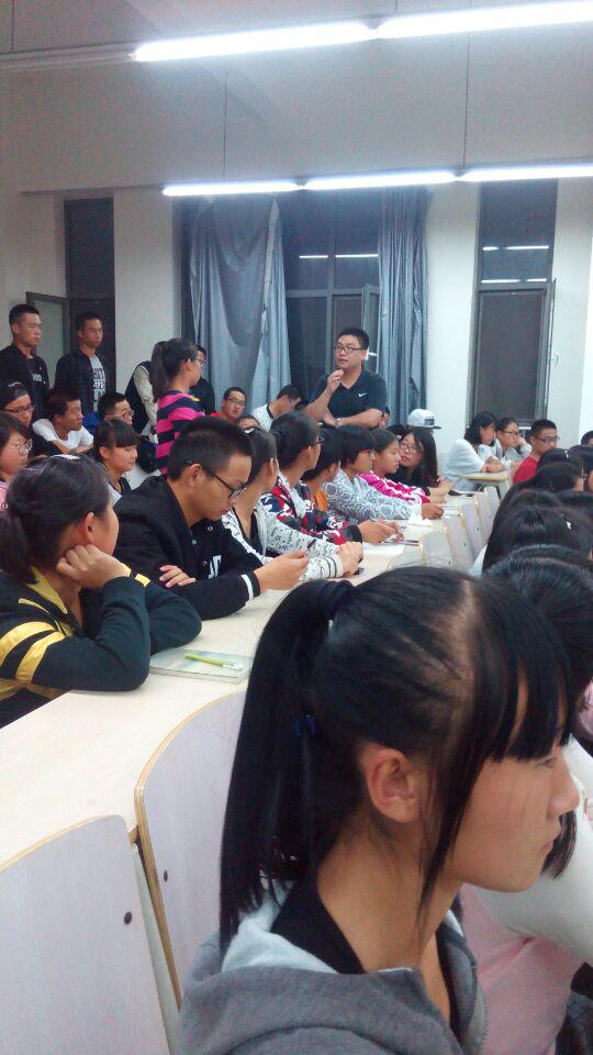 随后是杜鹏老师发表讲话。杜鹏老师对沙盘协会管理层做了简要概述,相信沙盘协会管理层是优秀的团队,增加了新生对沙盘协会管理层的信任。还对沙盘协会仪器设备的使用提出了几点要求,要求同学们爱护设备。随后对收取的会费的使用做了详细说明。问题阐述过后,进入了与新生互动环节。同学们提出的问题,杜老师一一解答,同学们关于沙盘协会的种种疑惑终于有了答案。杜博士的讲话让我们看到沙盘协会强大的领导团队,优越的培训环境,同学们掌声此起彼伏。