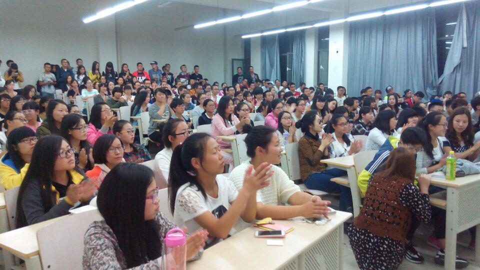 最后是沙盘协会会长郭海娇发言,会长对报名时间、面试时间、报名人数、录取人数做了详细说明。9月25日进行报名,报名人数达250人,9月28日进行面试,录取人数达186人。会长又提出尊重、热情、坚持、能力八字箴言告诫新生,尊重才能换来机会,热情才能认真工作,坚持才能取得能力,能力自然也就具备。八字箴言让新生获益匪浅。郭会长的讲话让同学们了解了沙盘近期概况,感受到了到了沙盘的魅力,同时沙盘协会得到了新会员的极大肯定。