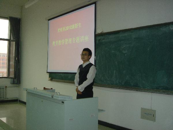 为了更好的开展教育教学工作,为了使大一新生对我系各方面情况有更加深入的了解,贸易经济系于2010年9月30日下午3点在公共教学楼302举行了一场关于教育教学管理的专题讲座,邱淑英主任,霍孟仁书记出席了此次讲座。