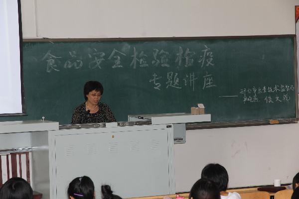尹书记从事纺织品鉴别多年,具有十分丰富的经验,通过列举大量身边实例,使同学们更深一步了解了纺织纤维的鉴别方法和鉴定知识。侯主任针对当下食品安全焦点问题,结合多年工作经验,对如何正确饮食、如何鉴别食品真伪及食品掺假等与我们生活息息相关的知识做了专题讲座。