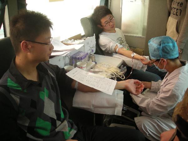 2011年3月26日上午9:00贸易经济系联合邢台市中心血站,开展了一场“献血进校园”活动。贸易经济系团总支学生会全体成员100人参加了此次活动。