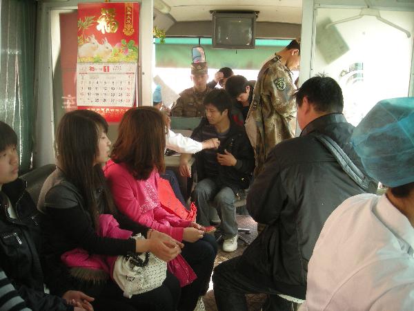 系团总支学生会成员在献血车前设立咨询处,同时,还安排人员身穿红十字会的红色制服,在咨询处及校园的来往通道上,为同学们介绍献血的意义及相关注意事项、指导填写献血单。这次活动吸引了学校内大量学生及来我校参加计算机考试的军人参与献血。采血工作人员细心向同学们讲解献血规定,认真的检查同学们的身体状况。学生们献血热情高涨,在献血车临离开前,还有众多学生在排队等候。