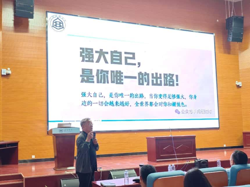 2025年5月22日,经济与贸易学院特邀河北经贸大学硕士生导师、邢台学院特聘学科带头人孟华兴教授,举办题为“归零?重构?超越——给未来社会人的认知升级指南”的专题报告。报告会由学院党委书记马在革主持,经贸学院部分教师、全体辅导员和在校大学生200余人参加了报告会。