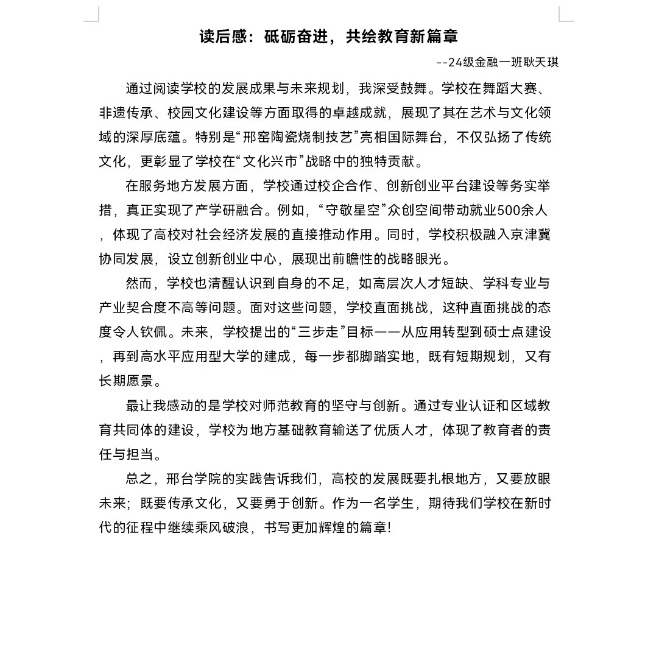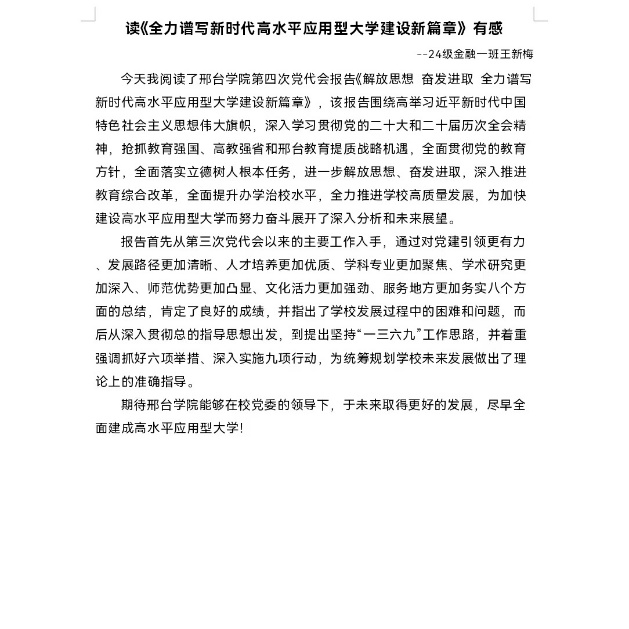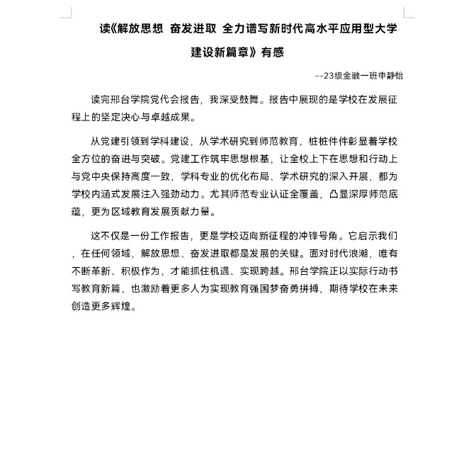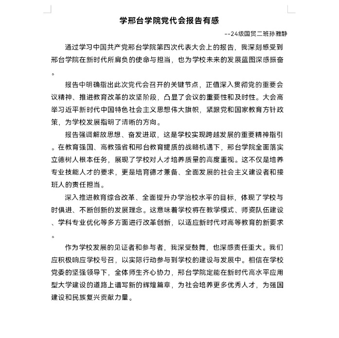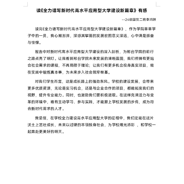 大家纷纷表示,要以此次学习为契机,强化责任意识,明确作为学生干部的使命担当,主动融入发展大局;立足专业学习,夯实成长根基;结合学校“应用型人才培养”目标,将个人发展融入国家需求;要践行“全心全意为同学服务”的宗旨,聚焦需求导向,提升服务质效。