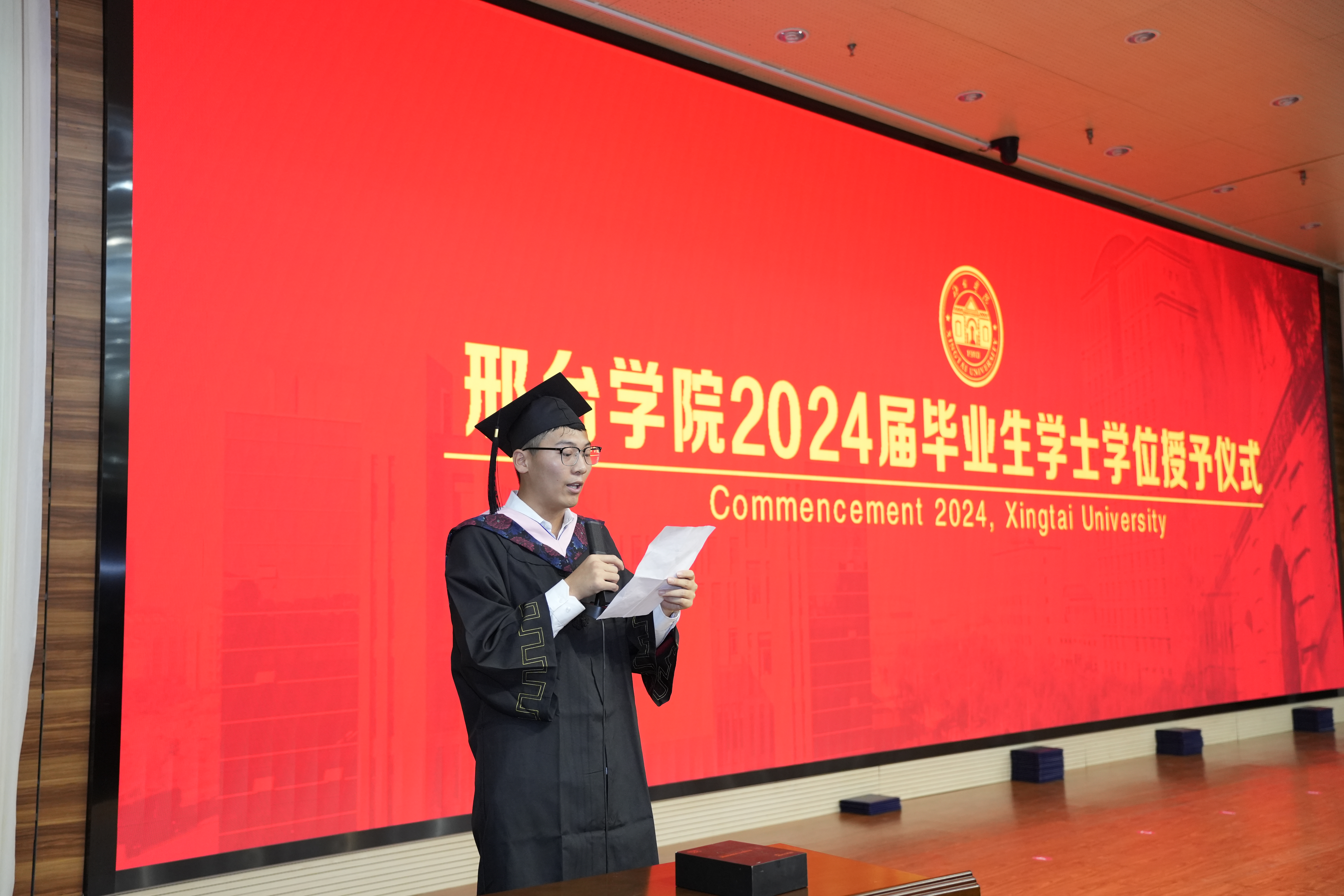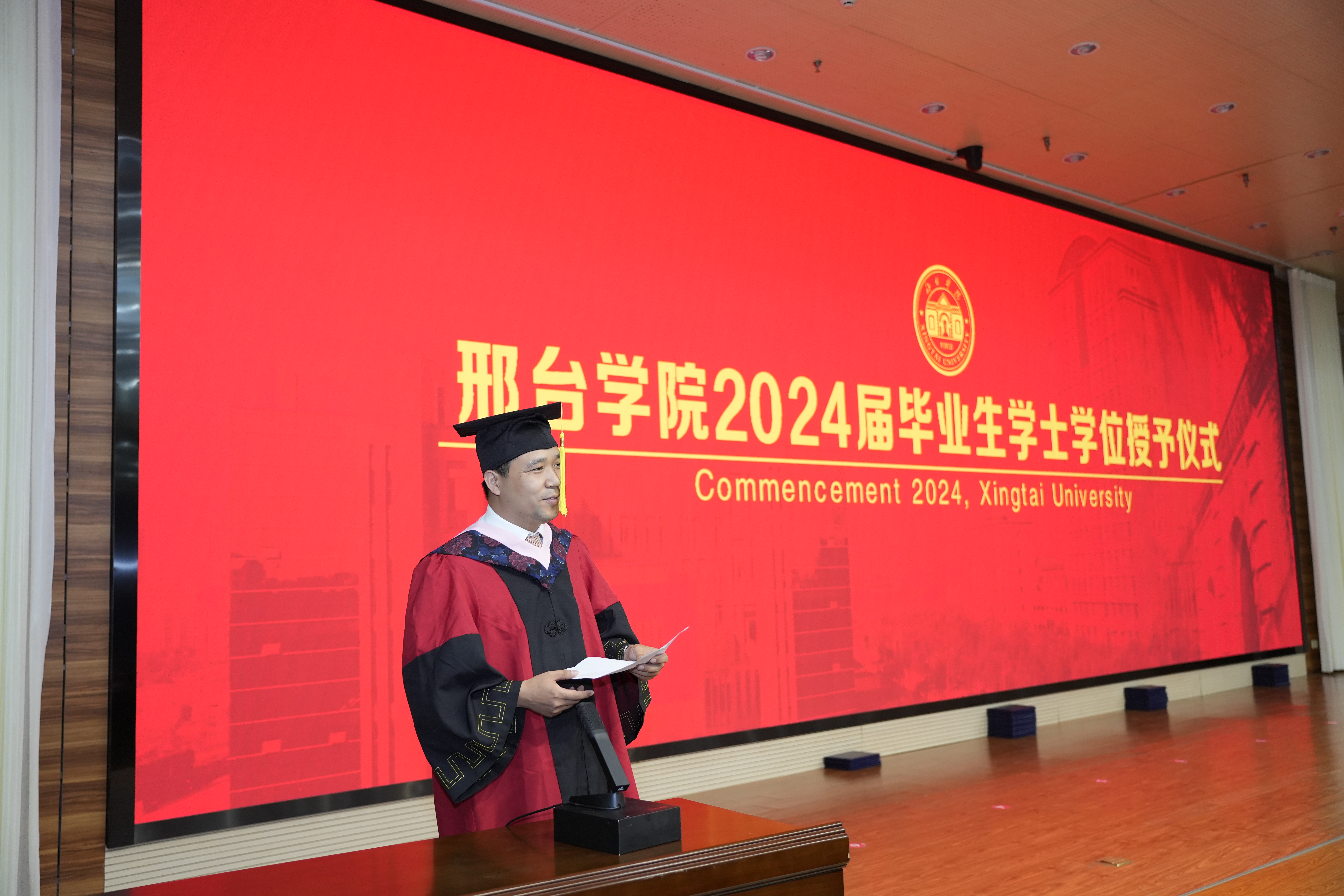 6月13日下午,阳光洒满校园,经济与贸易学院在体育馆报告厅内举行了一场庄重而热烈的学位授予仪式,为即将步入社会的2024届毕业生们送上了最真挚的祝福和最高的学术荣誉。
