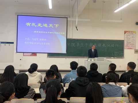 10月14日下午,我院在公教楼303教室举办了学生干部礼仪知识培训讲座。特邀我校教学名师、礼仪专家马爱军副教授主讲,院长李庆波、学生会学生干部及各班信息员出席培训会。