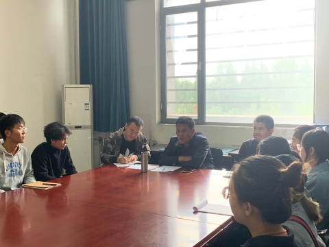 我院于2019年10月10日上午九点,在公教楼307召开学生会换届座谈会,出席人员:党委书记马在革,团委书记杨光,学管主任马飞,及新老两届学生会主席团成员和各部部长。