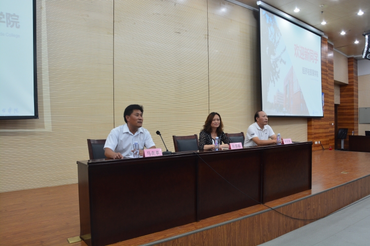 经济与贸易学院李庆波院长做了主题讲话。从学科专业、师资队伍、人才培养、实践能力四个方面介绍了经贸学院基本情况,并对新生们提出了殷切希望和要求。提醒学生不能放松学习,始终把学习放到第一位,希望同学们刻苦学习、勤奋学习、善于学习,掌握科学的学习方法,持之以恒地刻苦用功,全身心的投入,丰富和储备知识,提高自己的专业技能和综合素质。同时要求大家要踏踏实实做事,本本分分做人,做一个有理想、有担当、有责任的人,成为社会发展的建设者和开创者。