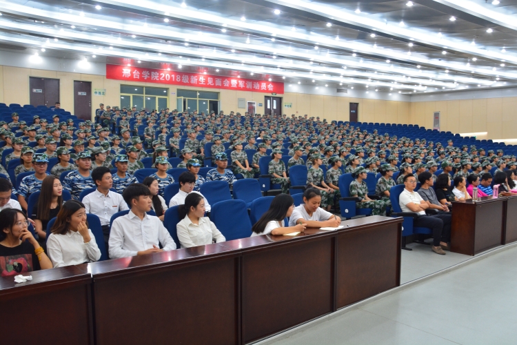 9月12日下午,经济与贸易学院在体育馆报告厅举行新生见面会暨军训动员大会。邢台学院党委常委徐惠敏同志出席了会议,经贸学院领导班子、师生代表、2018级全体新生参加了会议。
