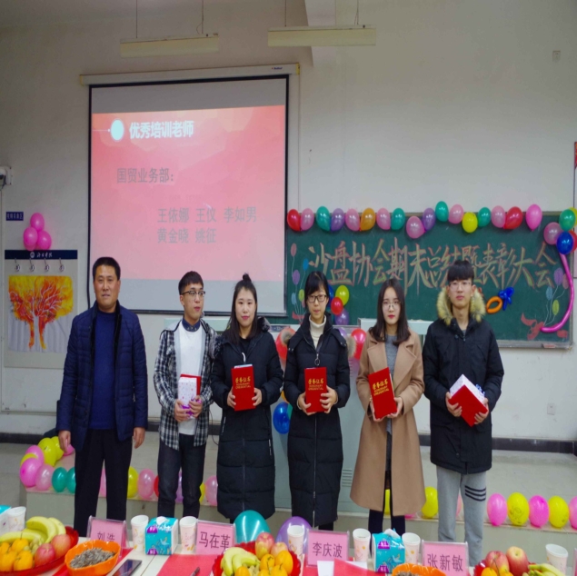 12月22日下午,经济与贸易学院在307会议室召开了沙盘协会总结表彰大会。李庆波院长、马在革书记,指导老师张新敏,沙盘协会会长、副会长等参加了此次会议。