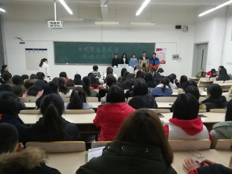11月30日于公教楼320进行决赛。选手身着正装,精神饱满,吸取了上次比赛的宝贵意见,并做了充分准备。各位选手精彩的表演内容不仅为此次比赛增添了更多的亮点,更将现场气氛推向了高潮。经过激烈角逐,三名选手脱颖而出,由评委为获奖选手颁发证书以及奖品,为其余选手颁发纪念奖并合影留念。