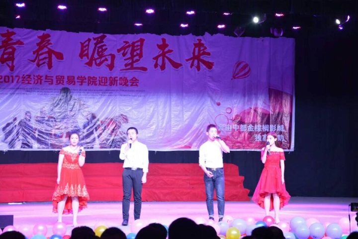 2017年11月17日晚7点经济与贸易学院于邢台学院音乐厅举办一场以“畅想青春,瞩望未来”为主题的迎新晚会。出席晚会的有邢台学院团委书记学生处处长张盈利、我院院长李庆波、书记马在革及教师等。