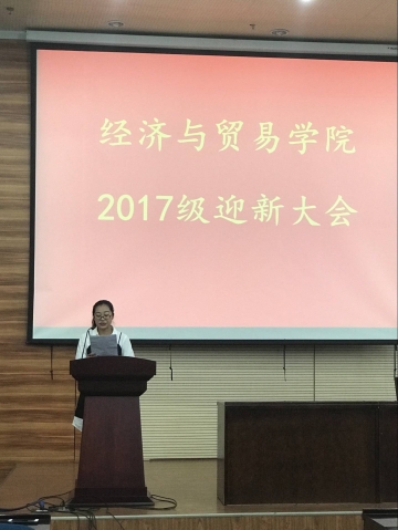 首先,14级学生代表宋晨同学向新生分享了大学学习、社会实践和文娱活动,号召新生们积极投入到大学生活中去,以饱满的精神状态走好大学之路。17级新生张文雅同学表达了对大学生活的展望,并表示不忘师长的嘱托,严谨勤奋,求实进取,学好专业知识,促进全面发展。