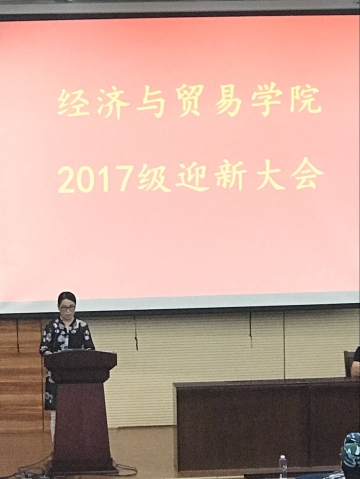 会上,经济与贸易学院院长李庆波代表学院全体师生向2017级新生的到来表示热烈欢迎,并详实介绍了学院的基本情况,对同学们寄予了希望、提出了要求。李院长希望同学们要珍惜大学美好时光,尽快适应大学生活,努力学习,全面提高综合素质;要确立目标,志存高远,加强自律意识,强化自我管理,多做一些有意义的事情;要转变学习方式方法,掌握独立学习、独立生活的本领,多参加实践活动,锻炼自己各方面能力。