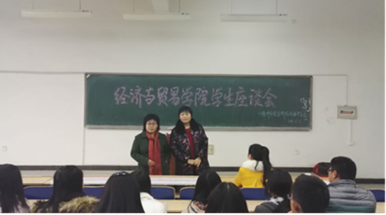 2015年11月11日下午2:30经济与贸易学院在公教楼515教室召开了学生座谈会。参加座谈会的有:邱淑英院长、尚爱英主任、14级和15级各班学生代表。