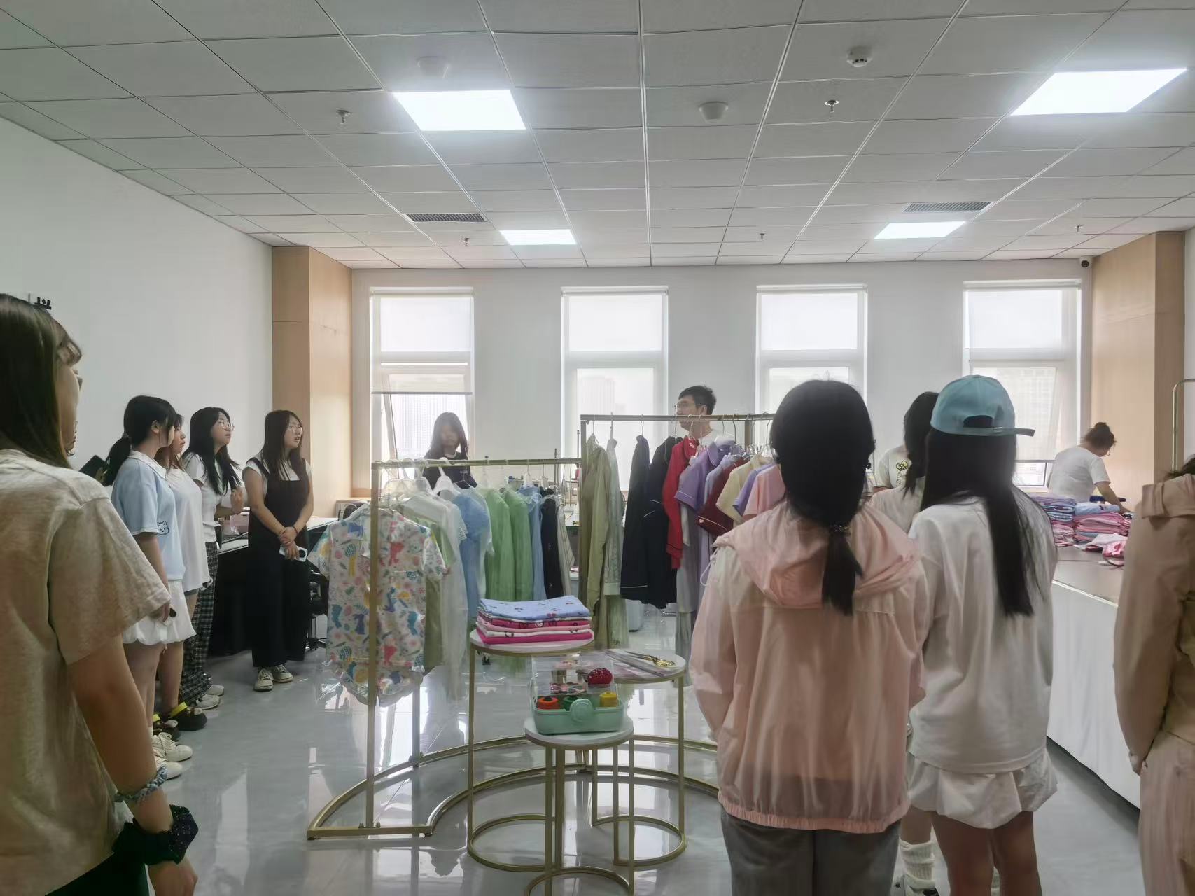 在艺术与科技研究院,师生们首先参观了校企合作企业——深圳市可菲时装有限公司。企业负责人赵总详细介绍了其产品国际市场布局、品牌推广策略、供应链管理及应对国际贸易规则变化的经验。同学们近距离考察了现代化生产线,了解到“设计-生产-电商”全链路,直观认知B2C行业生态,并就跨境电商渠道拓展、国际客户服务、平台运营等热点问题与企业专家深入交流。