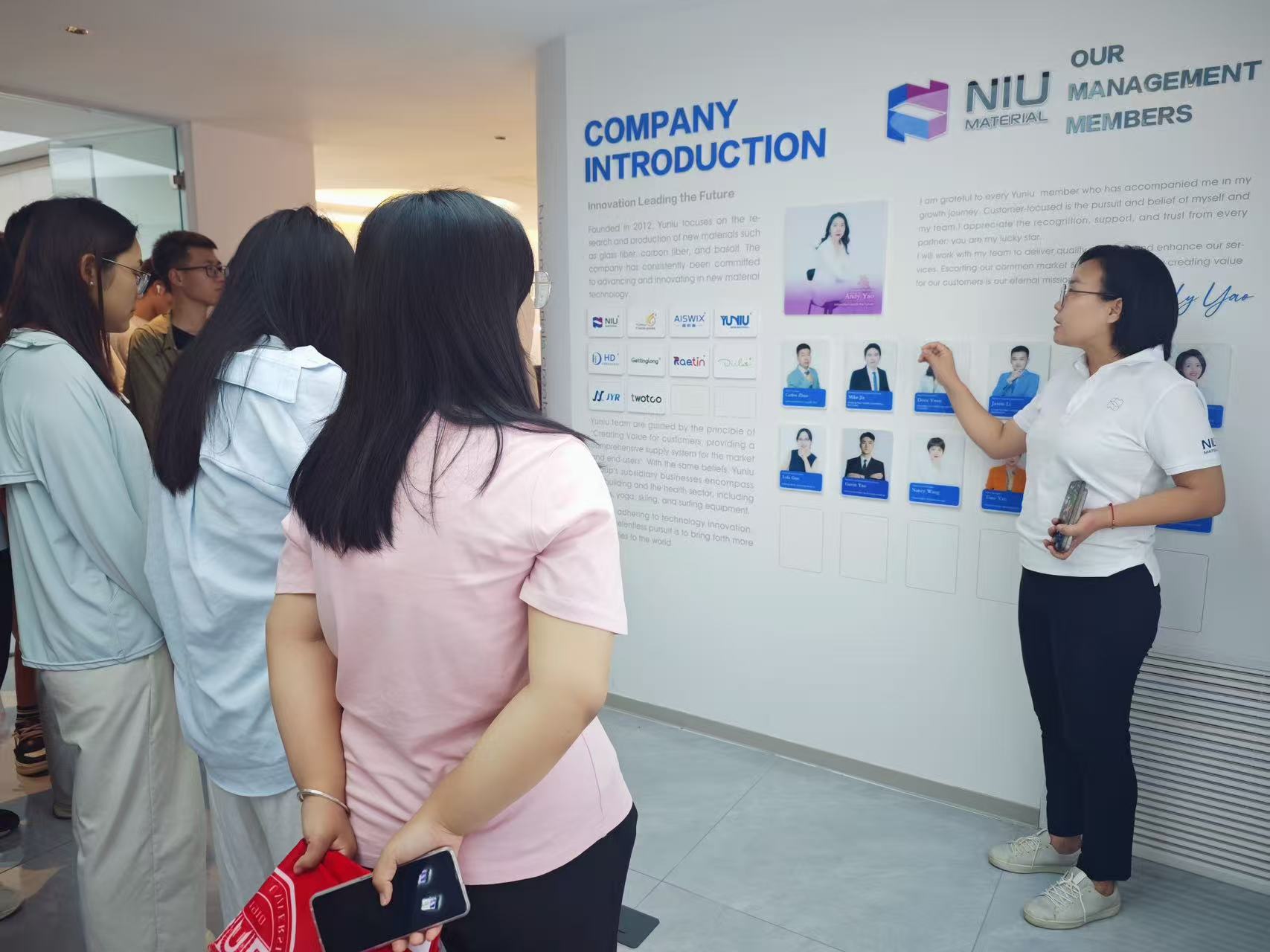 在企业相关负责人的带领下,师生们分别走进昱钮玻钎、纽安美科技、量能国际及钧益润四家邢台外贸企业见习。各企业工作人员带领同学们参观公司的办公环境,详细地讲解各个部门职能、主要产品、产业分布、国际业务布局及交易成果。此外,结合个人履历对大学生的职业生涯规划进行了认真阐述,同学们认真聆听,不时提出问题,与工作人员进行互动交流。