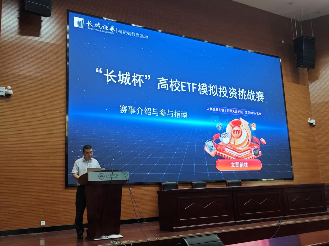 随后,长城证券石家庄营业部副总经理闫红亮在仪式上发表了讲话,对邢台学院的大力支持表示感谢,并对参赛学生寄予了厚望。他详细介绍了ETF模拟投资大赛的规则和流程,鼓励学生们积极参与,勇于尝试不同的投资策略,在比赛中锻炼自己的能力,同时也希望学生们能够通过这次大赛,更加深入地了解金融市场,树立正确的投资观念。