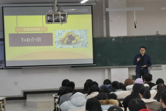 此次“黄金T+D模拟交易大赛”中通过中国银行手机银行线上客户端贵金属模拟交易平台进行贵金属账户模拟交易的竞赛。通过模拟账户交易能有效提高学生们动手操作能力和理论联系实际的能力。为此,我院诚邀中国银行河北省分行金融市场部吴忠荣经理为参赛学生进行赛前培训以及相关知识的讲解。吴经理的讲解,严谨又不失趣味,全面又深入细节,着重讲述了关于黄金交易的有关知识和比赛操作的相关流程,并一针见血的指出许多当代大学生学习、生活、未来就业的许多问题。