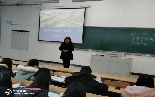 人民币汇率是学习金融专业知识,了解经济发展,培养经济人才体系的重要一环。本次讲座内容充实,案例典型,拓展了学生的理论视野,提高了学生深入学习金融知识的兴趣,将为今后金融专业课的学习打下良好的基础。