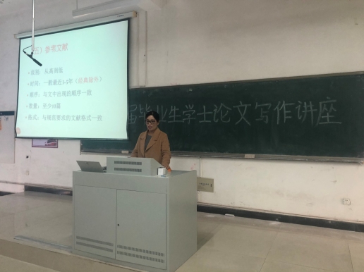 11月11日下午,经济与贸易学院在公教楼303教室举办了2020届毕业论文写作专题讲座。张海燕副教授主讲,院长李庆波主持,教研室主任、论文指导教师及124名毕业班学生聆听了讲座。