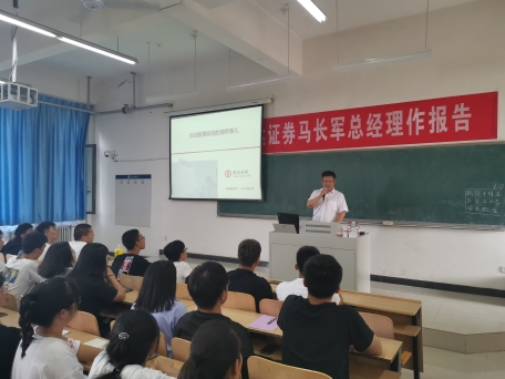 马长军总经理以《谈谈股票投资的那些事儿》为题,从股票证券市场的发展历史入手,结合自身多年的工作和投资经验,详细地介绍了在股票证券市场中风险评估的重要性,分享了股票投资的基本策略和技术。在问答环节中,马总与同学们积极互动,交流经验,报告会取得了良好的效果。