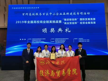 5月30日-6月3日,由中国国际贸易促进委员会商业行业委员会、中国国际商会商业行业商会和(国资委)商业国际交流合作培训中心主办的2019 年第九届全国高校商业精英挑战赛“智欣联创杯”国际贸易竞总决赛在江苏南京举行,我校经济与贸易学院代表队在众多“211”、“985”名校中脱颖而出,获得大赛总决赛一等奖。