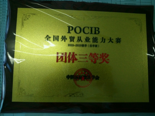 由中国国际贸易学会主办、南京世格软件有限责任公司承办的“第八届POCIB全国外贸从业能力大赛(春季赛)”于2019年4月28日圆满结束。本届大赛共有179所院校、237支队伍、共计4740名选手参加。我院首次组队参赛,在李胜军、梁雪二位老师的指导下,20名选手刻苦拼搏,互相协作,经过20天的激烈角逐,荣获团体三等奖。