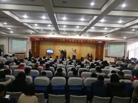 为了提高学生的业务水平,选拔参加全国国贸比赛人才,我院于12月17日下午,在图书馆报告厅举办了第七届国际贸易技能大赛。院长李庆波、院党委书记马在革、国贸教研室主任李胜军及国贸教研室老师出席了本次活动,邢台量能国际贸易有限公司负责人周贝贝作为特邀评委参加了比赛。